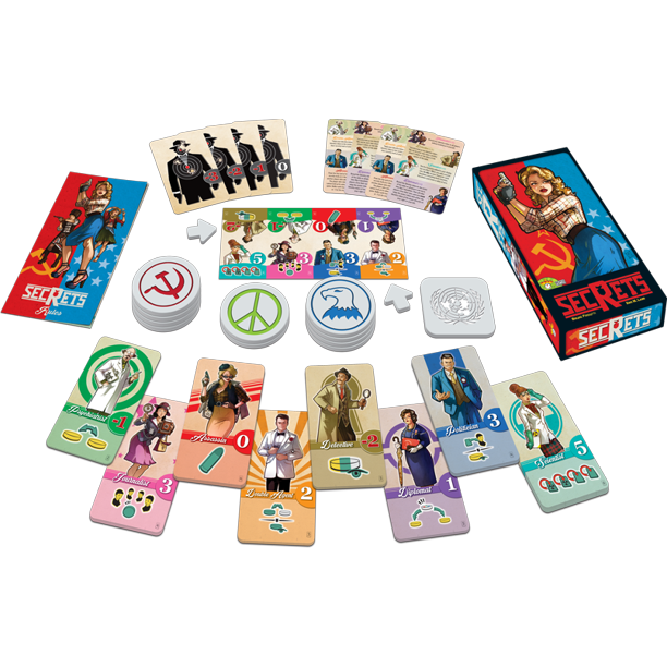 Players are assigned a hidden team, the CIA and KGB, trying to collect the most points for their side. In addition, one or two players are secretly anti-establishment Hippies who are working for nobody. Their goal is to fight the Man and have the fewest points.